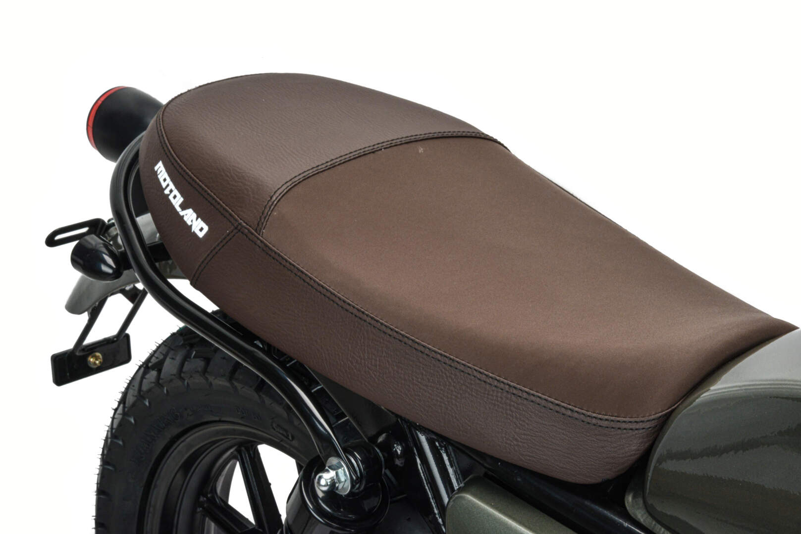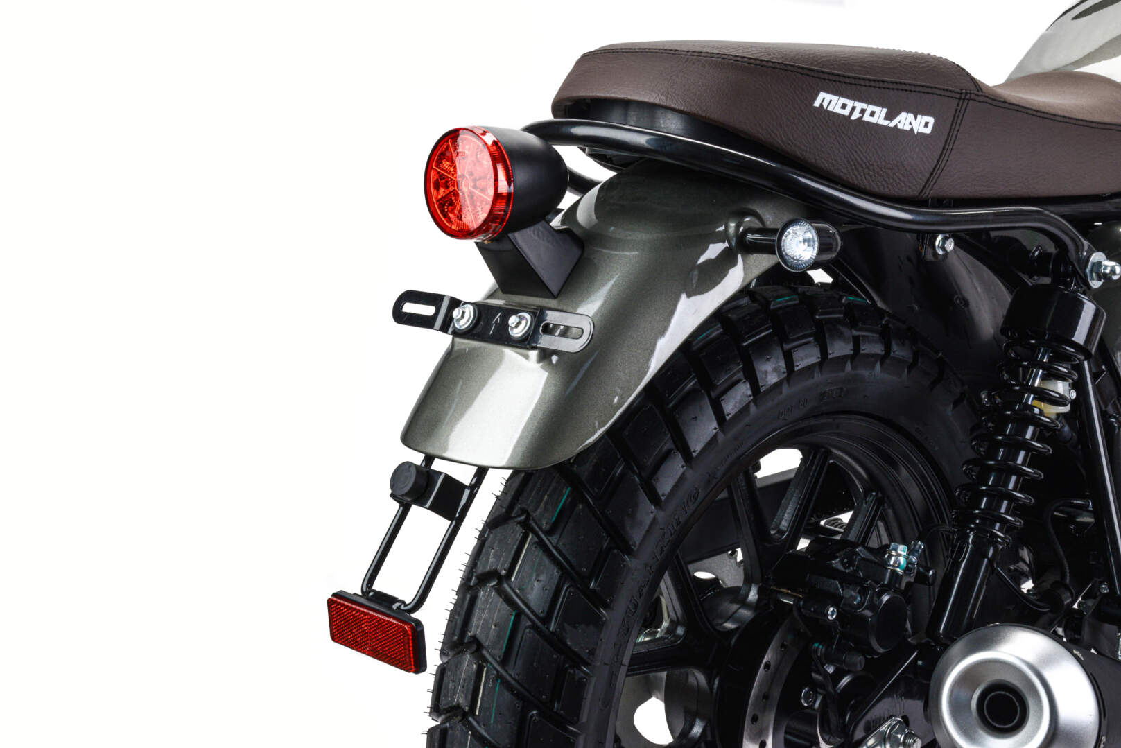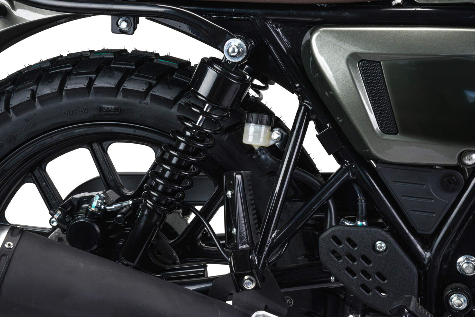 Покрышки 110/90-R17 130/80 R-17 с универсальным рисунком протектора установлены на прочных алюминиевых ободах. Такое сочетание позволяет быть уверенным в хорошем сцеплении с дорогой.